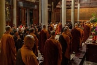 (诵毕引请送阇黎归寮。诸比丘入和尚方丈礼拜)。