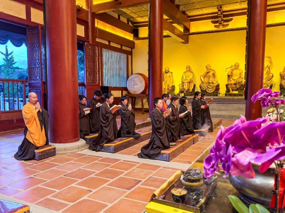 二年。勅沙门道士四百余人。于大明宫谈论设斋○上幸兴福寺。观沙门文叙讲经。上称善○白居易述华严经社记云。杭州龙兴寺沙门南操。因灵隐道峯法师讲华严世界品。遂发愿。劝黑白十万人持华严经一部。十万人复劝千人讽华严经一卷。每岁四季众会具斋。操捧香跪启于佛曰。愿于未来世华严藏世界大香水海上宝莲金轮中毗卢遮那佛前。与十万人俱。乃于众中率财置田千顷以给斋用。来求记于予。曰予即十万人中一人也。